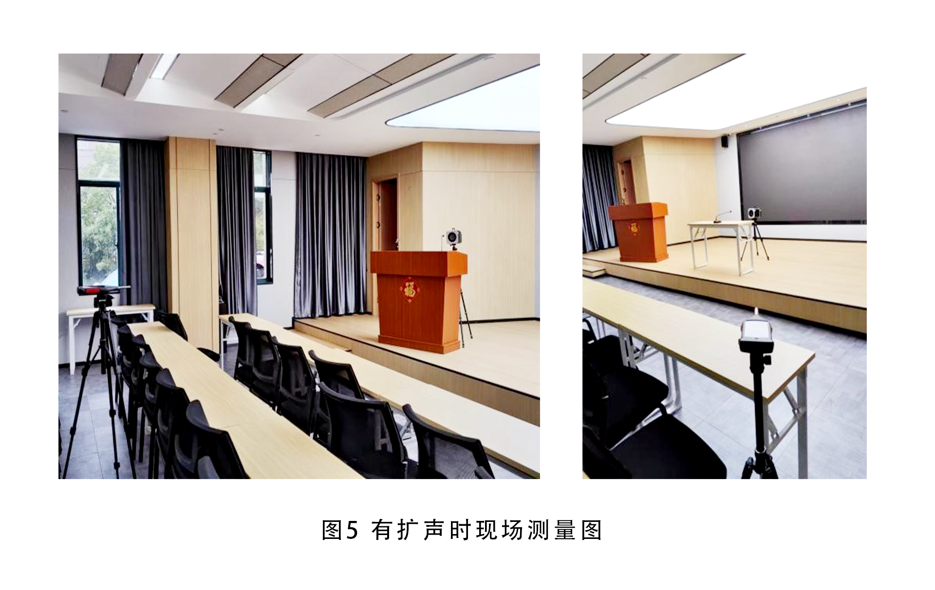 對于那些需要使用擴聲傳聲器講話或播音,再通過擴聲系統播放的場所,測試信號由智能聲源對著系統傳聲器發聲。測試聲源應置于正常說話距離,傳聲器的軸線指向正常發話方向;測試信號級與正常說話聲壓級相當,在距離聲源0.5 m處聲壓級為66 dBA。在傳聲器輸入處可用聲級計監測該聲壓級以及測試信號頻譜。測試聲信號經擴聲系統由揚聲器系統播放,利用聲級計可以按相關標準要求測量擴聲系統和聲學場所的各項指標。