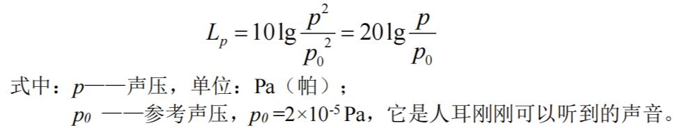 其實(shí)I為聲強(qiáng);I0為參考聲強(qiáng),一般取I0=10-12 W/m2,這是相應(yīng)參考聲壓級(jí)P0=2×10-5 Pa 時(shí)的聲強(qiáng)。一般情況下可以認(rèn)為聲壓級(jí)等于聲強(qiáng)級(jí)。